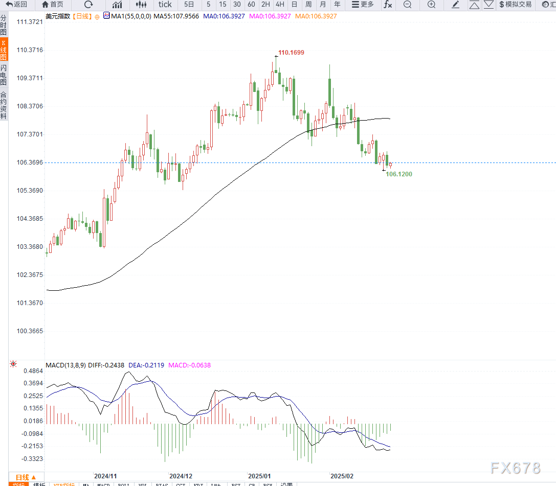 美元指数在亚洲市场早盘下滑至106.17,接近本周一触及的106.13低点,这是自去年12月10日以来的最低水平。市场对美国经济增长的乐观预期受到挑战,使美元承压,而避险货币日元则受到支撑。
