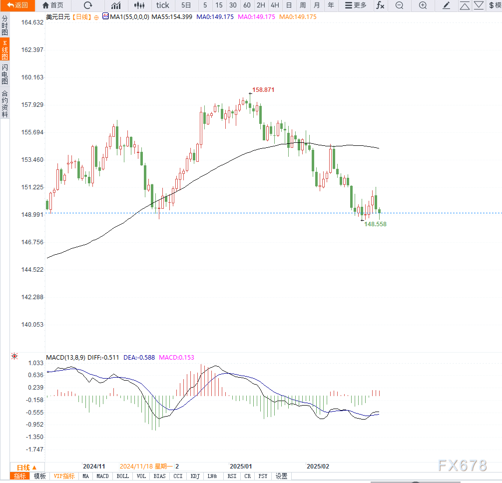 从技术面来看,美元/日元已跌破150.00关键支撑位,表明短期内仍存在下行压力。同时,日线图上的震荡指标仍处于负值区域,尚未进入超卖状态,意味着汇率仍有进一步下跌空间。