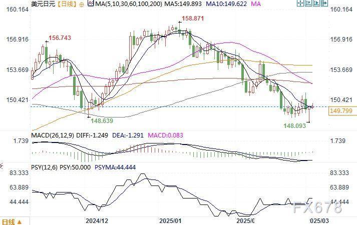 北京时间3月5日14:00 美元兑日元 报 149.68/69。