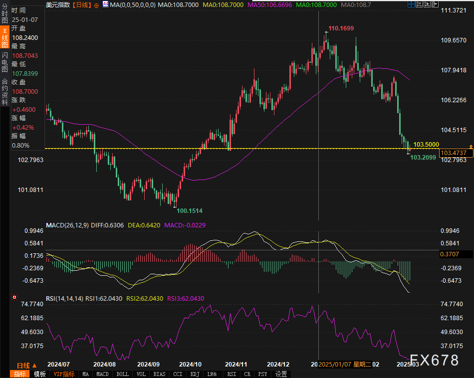 周三(3月12日),美元指数(DXY)报价103.5008,日内微涨0.05%,围绕103.5一线整理。从近期走势来看,美元在连续回落后企稳,市场避险情绪虽有所缓和,但美联储政策预期与关税相关的不确定性仍影响美元短期表现。