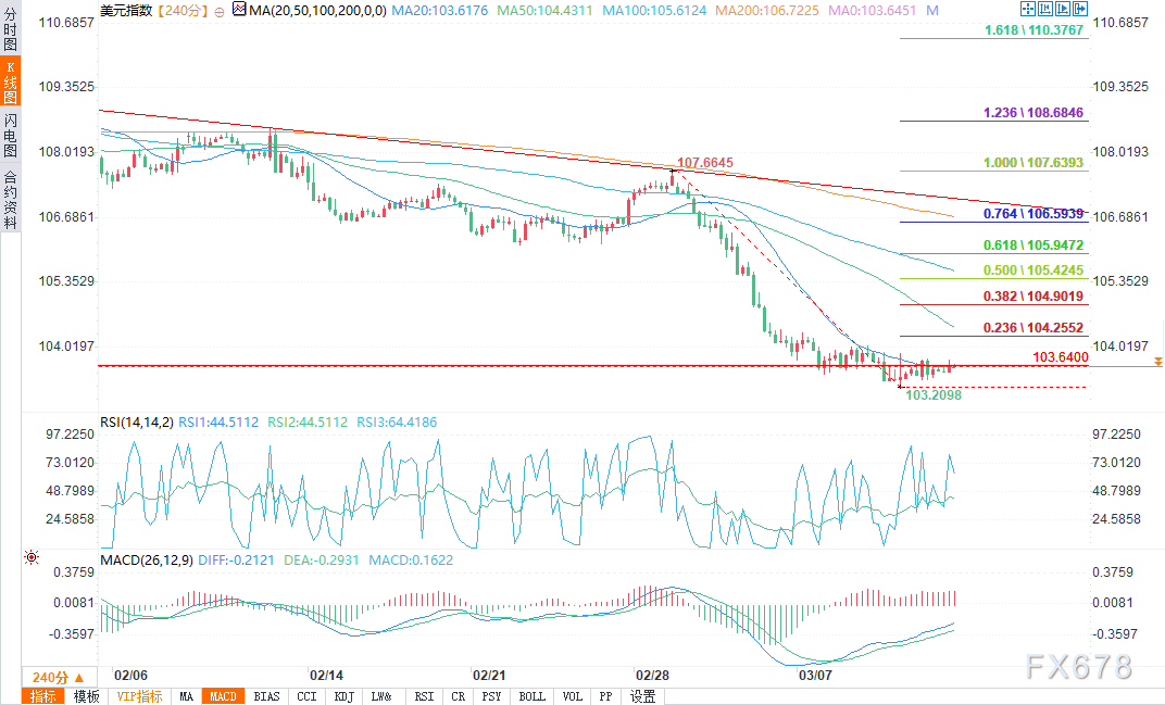 北京时间17:43,美元指数报103.6655/6852,涨幅0.08%。