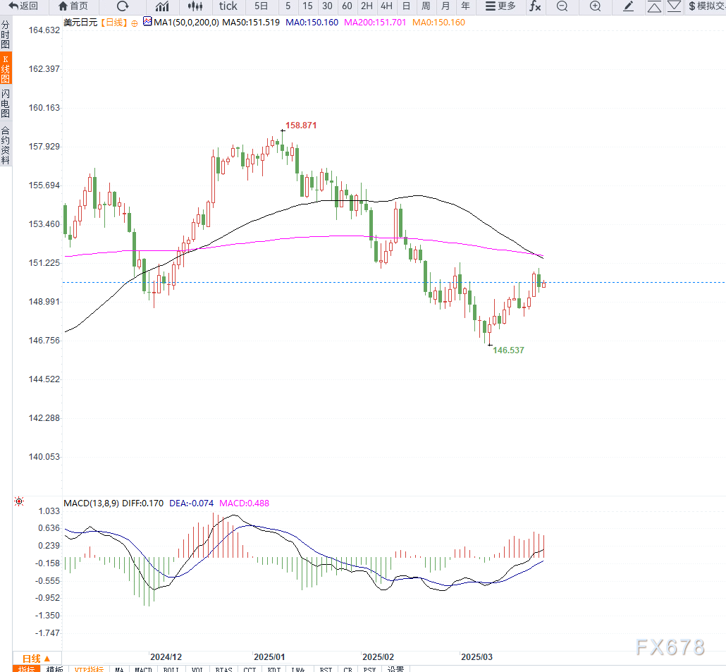 受其言论影响,日元在亚盘时段走弱,美日再次反弹至150上方。