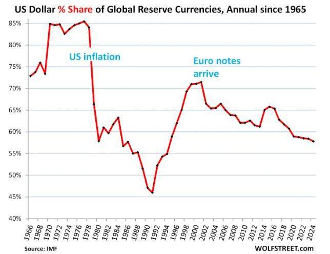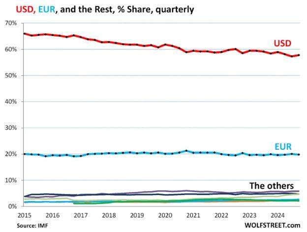Richter引用了国际货币基金组织(IMF)最新的COFER数据,该数据显示,美元在2024年作为全球头号储备货币的地位进一步下降。
