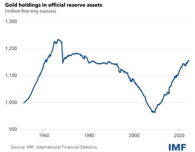 与此同时,各国央行包括美元在内的所有货币的外汇储备从2023年的12.35万亿美元增加到2024年的12.36万亿美元。