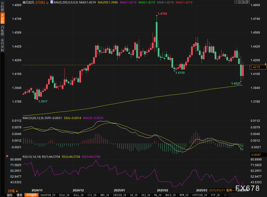 美元/加元周五反弹0.89%至1.4094,但周线仍跌0.68%,受原油暴跌与经济数据拉锯影响。