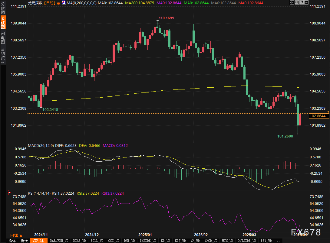 - 周五:鲍威尔承认特朗普关税政策将加剧通胀,淡化降息紧迫性,美指单日反弹0.98%至101.94。