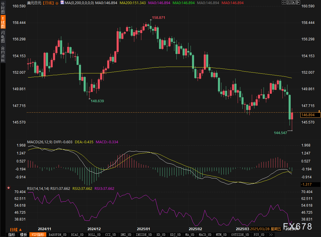 美元/日元周五反弹0.59%至146.03,但周线暴跌1.99%,创2月初以来最大跌幅。周四汇价一度触及145.19的七个月低点。