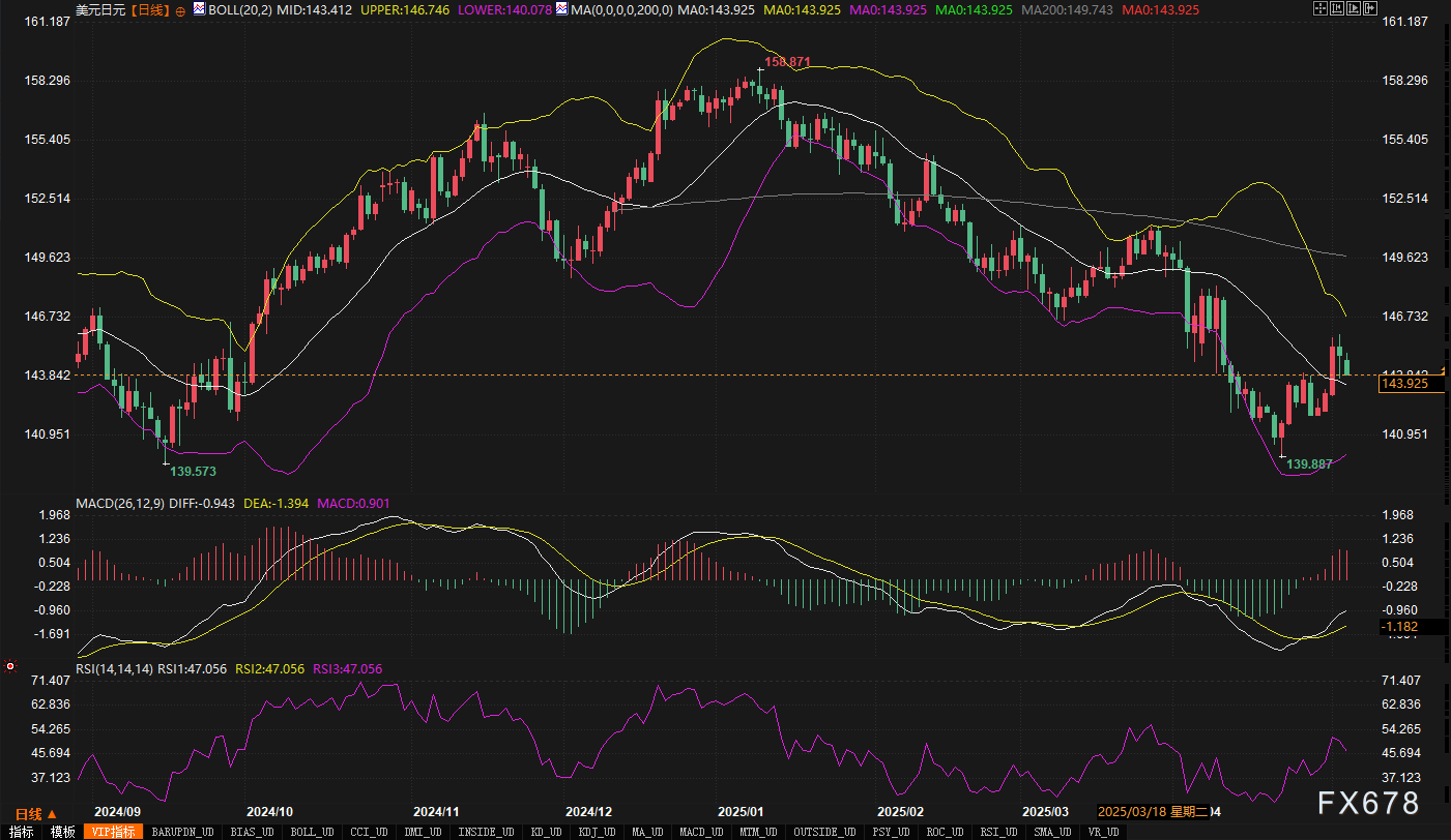 展望未来,美元/日元走势将受到基本面与技术面的双重驱动。基本面上,本周的美联储政策会议将是决定美元走势的关键事件。市场普遍预期美联储将维持谨慎立场,但任何关于通胀或降息路径的鹰派信号都可能提振美元,进而推高美元/日元。反之,若美联储释放鸽派信号,美元可能进一步承压,为日元提供更多上涨空间。此外,地缘政治风险的演变将继续影响日元的避险需求。俄乌局势和中东紧张局势若进一步升级,可能推动日元走强,而特朗普关税言论的后续发展也将是市场关注的焦点。