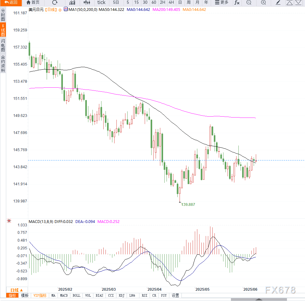 若后续能突破145.65阻力区域,进一步上行目标将指向146.00整数位,强势突破后则有望测试5月29日高点146.25-146.30区域。