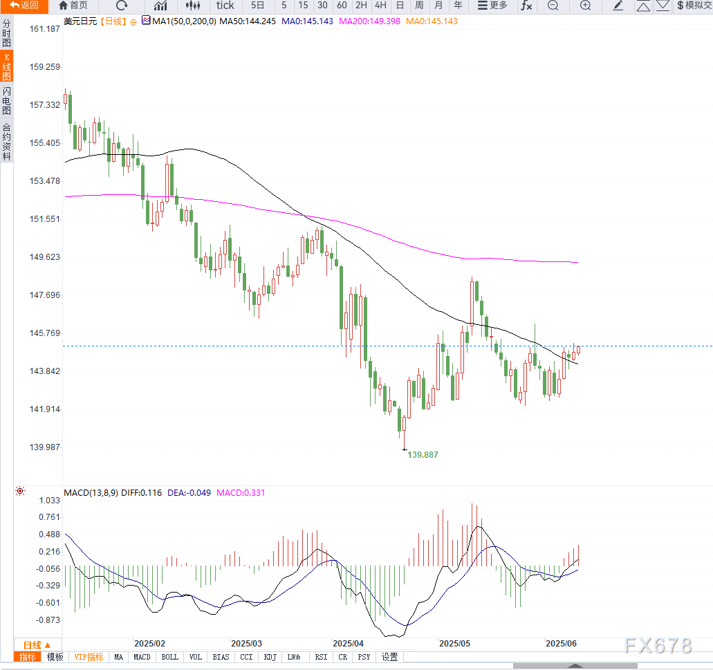 若有效突破145.30附近阻力(此前两周高位),汇价有望挑战145.60-145.65区间,并进一步冲击146.00整数位,甚至上探146.25-146.30区域(5月29日高点)。