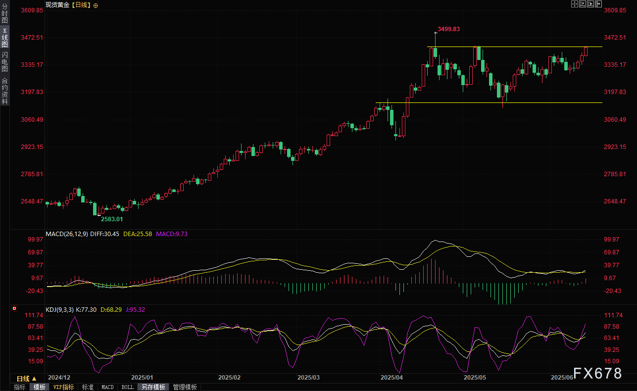 受冲突影响,国际原油和黄金市场出现剧烈波动。截止北京时间10:00,美原油价格一度飙升9.27%,触及每桶74.35美元,为2月3日以来新高;布伦特原油上涨逾7%,达到每桶75.28美元。现货黄金价格也大幅上涨近50美元,达到每盎司3433.18美元,创5月7日以来新高。市场对中东局势进一步恶化的担忧,推动了避险资产和能源价格的快速上涨。
