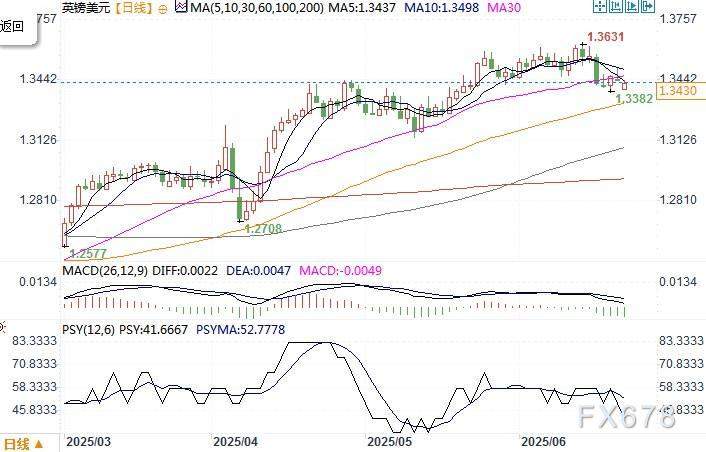 北京时间6月23日10:47 英镑兑美元 报 1.3430/32。