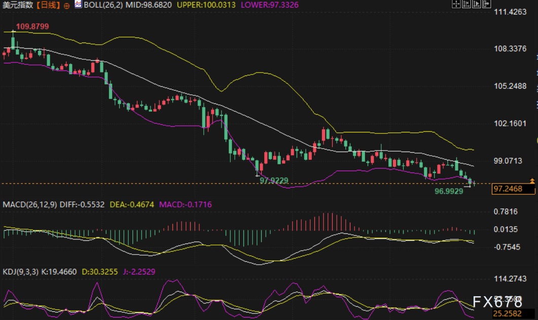 美元本周下跌超2%,最低至96.99,上半年还剩最后一个交易日,美元连跌五个月,势将创下自1986年以来最差的上半年走势;美元兑欧元周五收复了早些时候的跌幅,此前美国总统特朗普表示美国将结束与加拿大的贸易谈判,并将考虑再次轰炸伊朗,这打击了风险偏好情绪并导致股市走低。