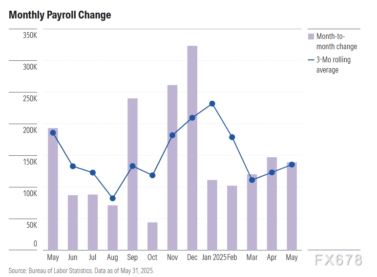 经济学家预测,在关税和移民政策效应不明朗的背景下,6月就业报告将显示就业增长减速和失业率小幅上升。根据FactSet的共识预测,6月非农就业人数(劳动力市场主要指标)预计增加11.5万人,低于5月的13.9万人;失业率预计从5月的4.2%升至4.3%。