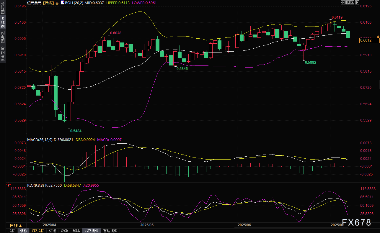 纽元的疲软表现反映了市场对新西兰经济前景的谨慎态度,尤其是全球贸易环境的不确定性对依赖出口的新西兰经济构成了潜在威胁。此外,新西兰储备银行(RBNZ)将于周三召开政策会议,市场普遍预期其官方隔夜拆款利率(OCR)将维持在3.25%不变,利率掉期交易显示这一概率高达81%。在全球风险情绪低迷的背景下,纽元的短期走势可能继续受到压制。