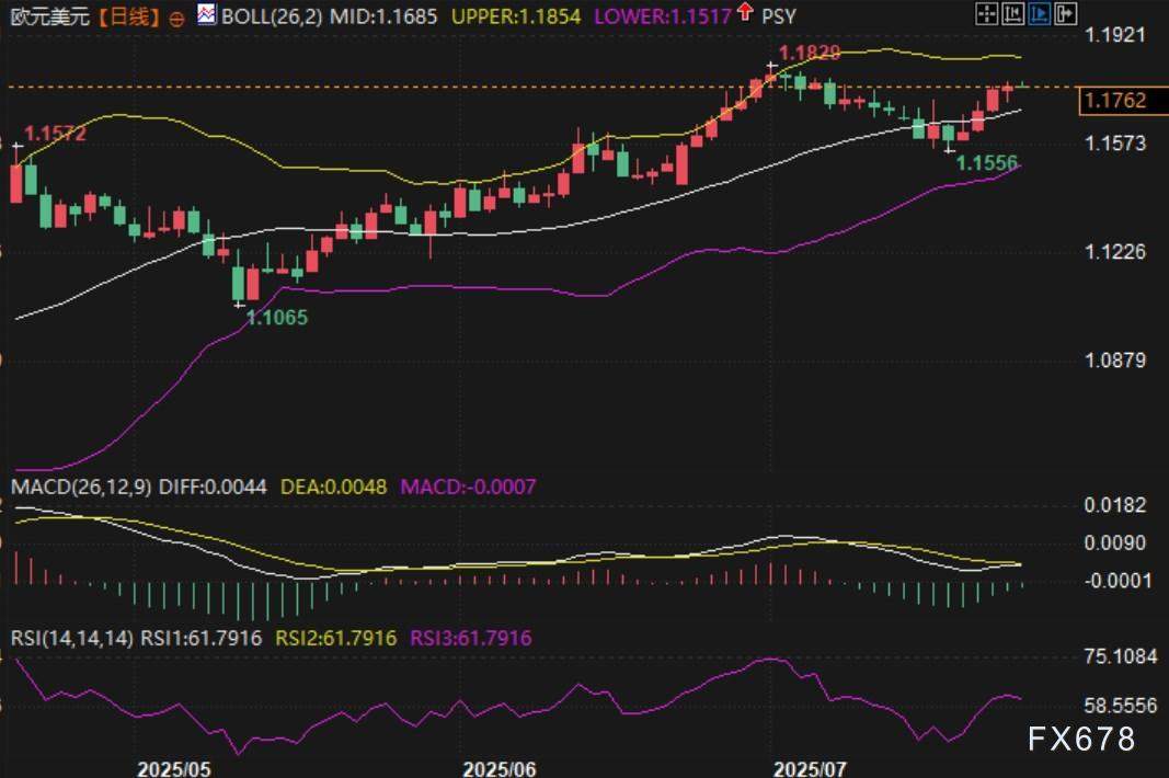 从技术图形来看,分析指出,EUR/USD已重新站上1.17,14日相对强弱指数(RSI)也维持在62附近,表明当前汇价上行动能温和延续;若能突破1.1829阻力位,则上看1.1900水平;而下方支撑则依次位于1.16、1.1535和1.1500;