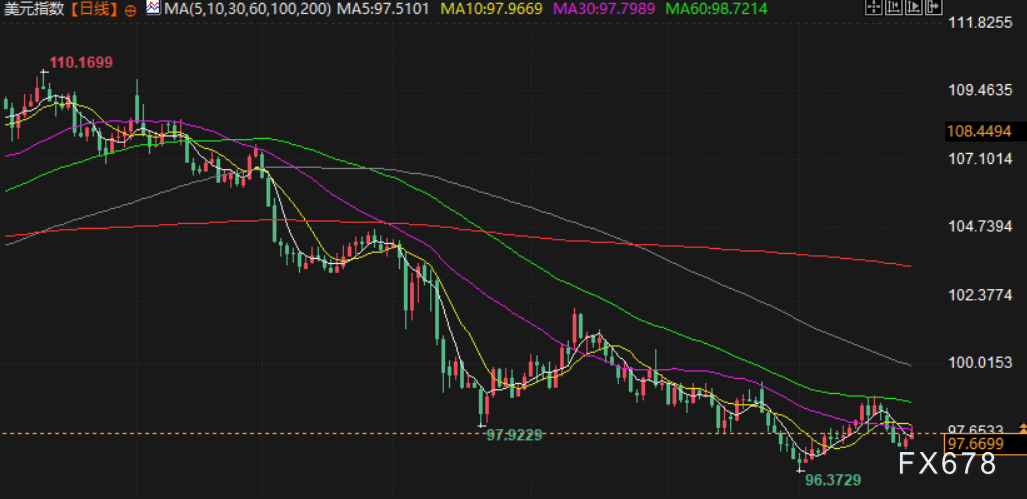 美元指数报97.45,本周势下跌 0.8%,为一个月以来的最弱表现,不过该指数周五反弹0.2%,至 97.663。