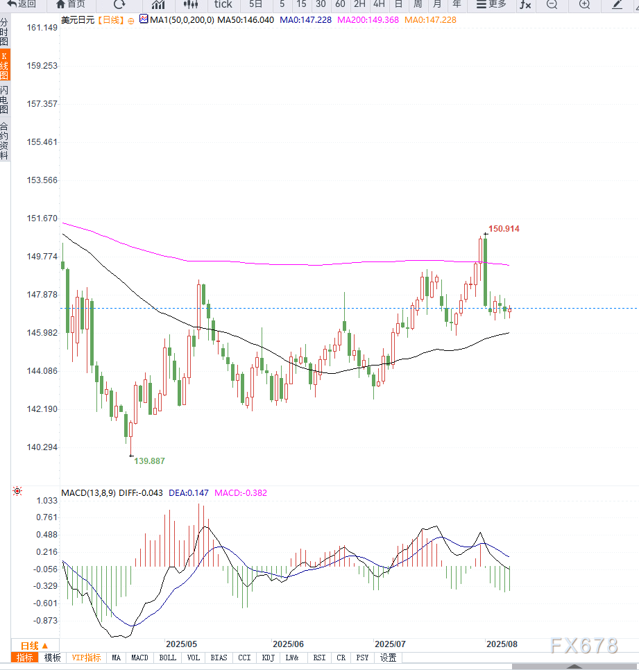 当前美元兑日元受多重因素交织影响,短期走势不明朗。日元因国内加息预期放缓和经济数据疲软而承压,但美联储的鸽派立场限制了美元上行空间,令汇价维持区间震荡格局。