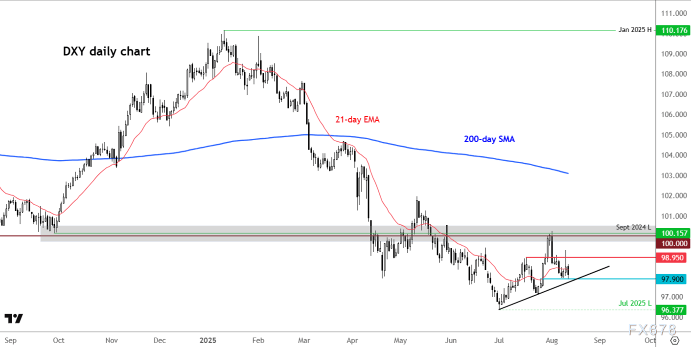 美元汇率因周二(8月12日)通胀数据公布而走低至近两周低位,该数据基本符合市场预期,且关税成本仍被静默消化在企业利润率中,并未转嫁给消费者。这为美联储应对疲软的就业数据提供了政策空间,很可能从9月开始启动降息。当前市场正押注这一预期,关于年内还将降息两次的猜测也持续升温。特朗普在社交媒体上对鲍威尔的持续抨击亦对美元形成利空,进一步加剧了美元汇率的看跌预期。