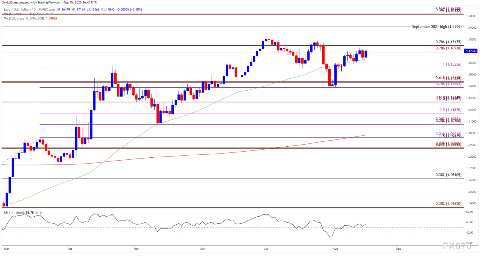 欧元兑美元正逼近月内高点(1.1730),本周初的反弹行情得以延续。若汇价有效突破/收于1.1690(78.6%斐波那契延展位)至1.1750(78.6%斐波那契回撤位)区间上方,或将进一步挑战7月高点(1.1830)。