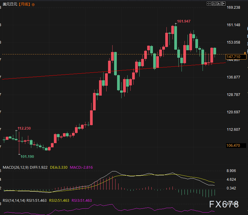 (美元兑日元月线图,来源:易汇通)