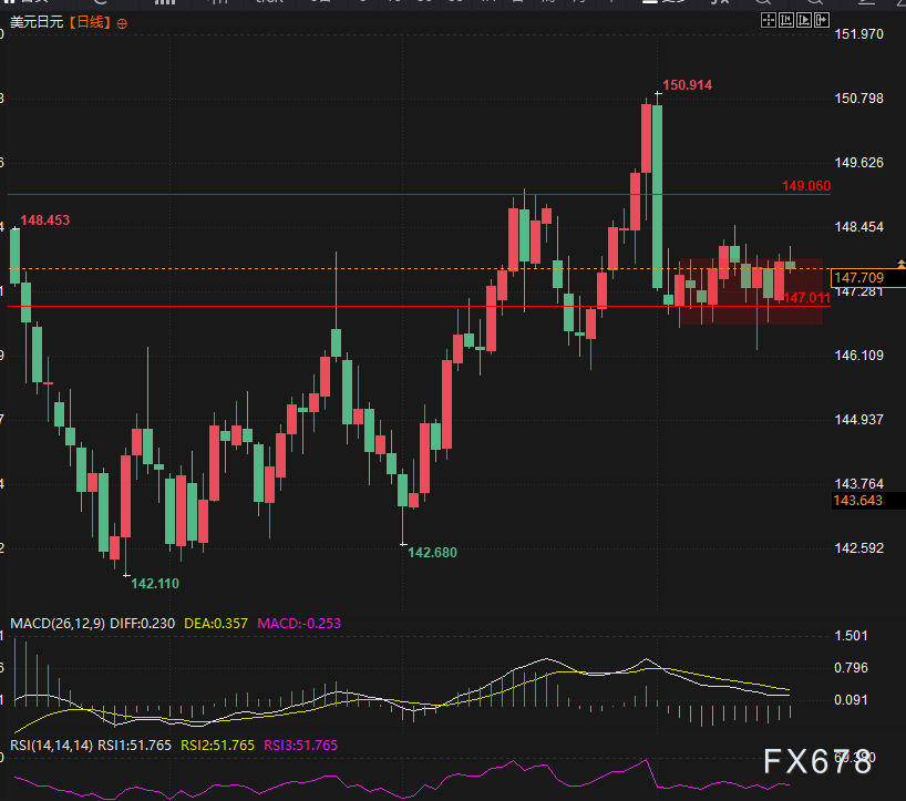 北京时间14:15,美元兑日元现报147.64/65。